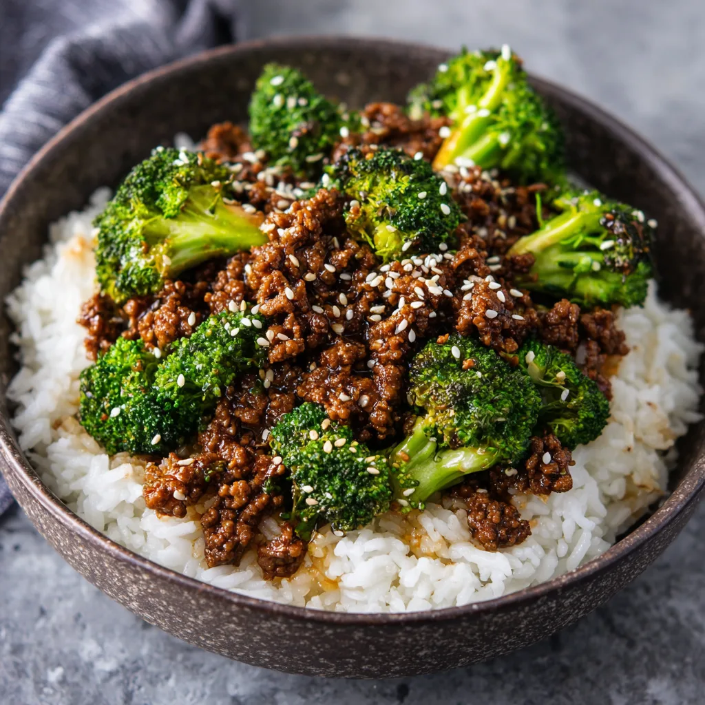 Easy Honey Garlic Ground Beef and Broccoli with Rice