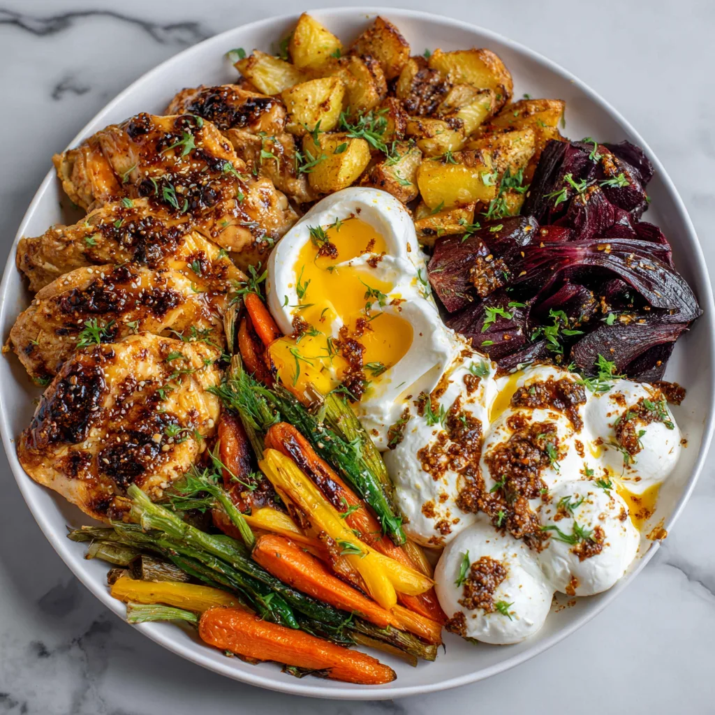 Hot Honey Chicken & Burrata Roasted Veg Platter | Easy Healthy Dinner