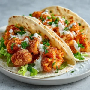 These Air Fryer Buffalo Cauliflower Ranch Wraps are best served fresh and warm, when the cauliflower is at peak crispiness and the sauce is perfectly sticky. To assemble, spread a generous layer of ranch dressing down the center of each tortilla. Add a handful of shredded lettuce, some carrots, and a few slices of red onion for crunch and freshness. Pile the buffalo cauliflower on top, then finish with a sprinkle of fresh herbs if desired.