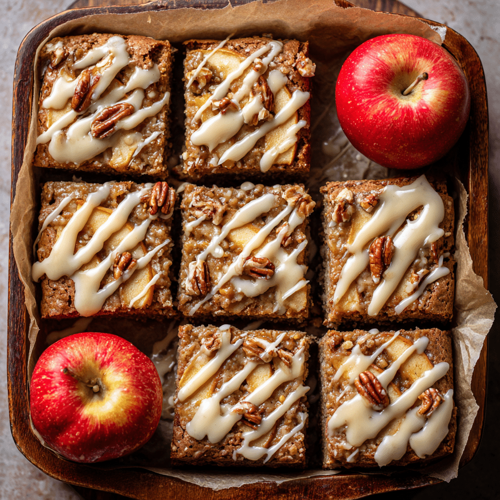 This recipe has a nostalgic feel, reminiscent of crisp autumn afternoons, family gatherings, and the joy of sharing desserts that make everyone smile. Imagine biting into a chewy, spiced square that bursts with tender apple bits, followed by the silky sweetness of maple syrup glaze melting on your tongue. 🍂🍰