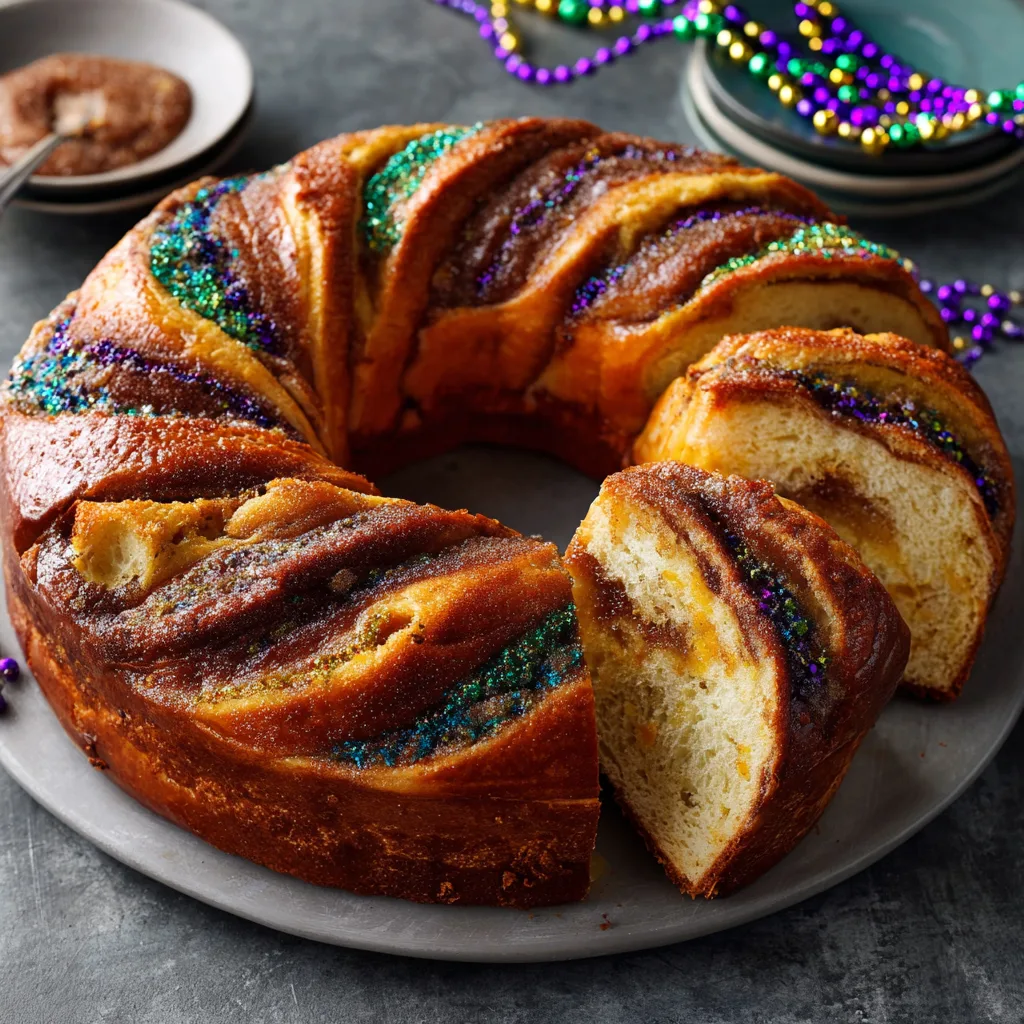 King Cake also works wonderfully for breakfast or brunch. Serve slightly warmed slices with butter or cream cheese on the side for an indulgent start to the day. Leftover slices can be toasted lightly for a new texture that still feels festive.