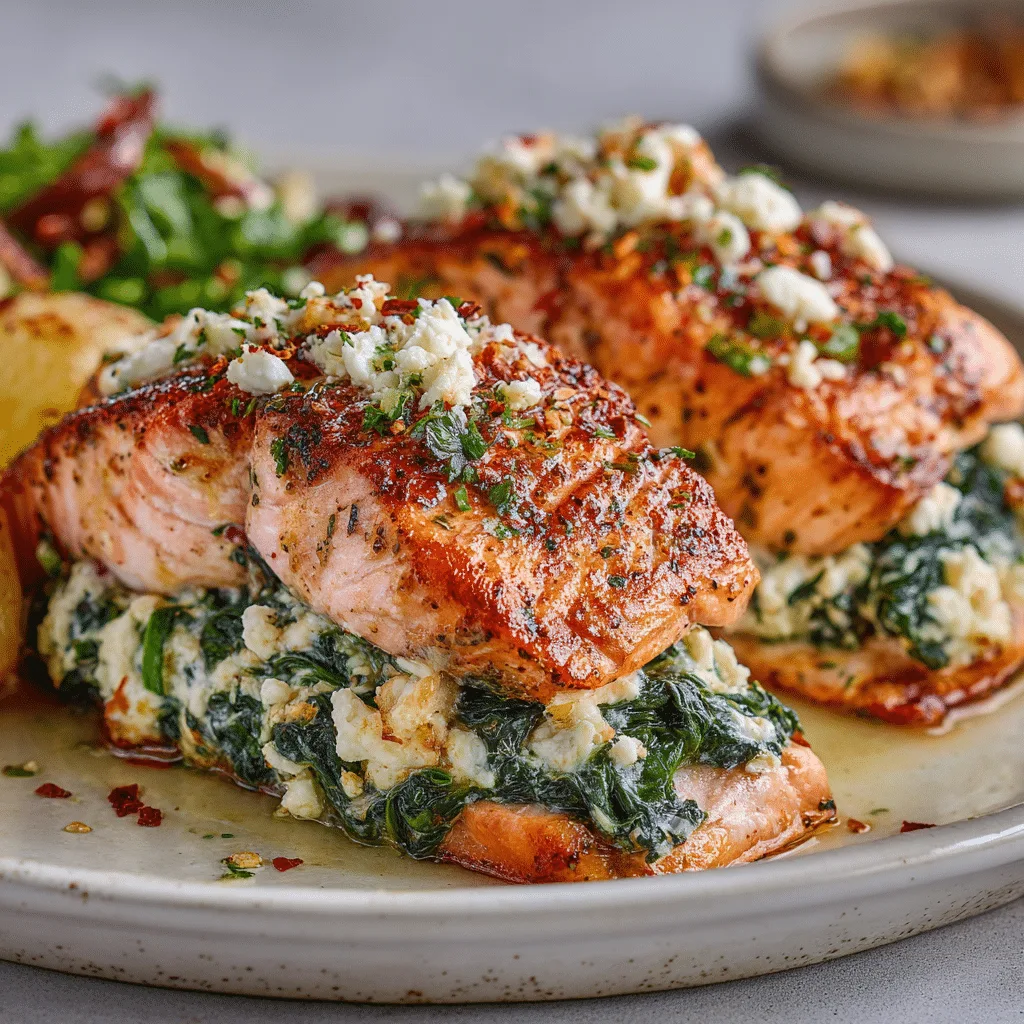 This recipe celebrates the rich, buttery flavor of salmon, elevated by a creamy, tangy filling of sautéed spinach and crumbly feta cheese. The contrast between the flaky fish and the savory filling makes every bite a delightful surprise. Not only does it taste heavenly, but it also feels like a restaurant-quality meal prepared in your own kitchen.