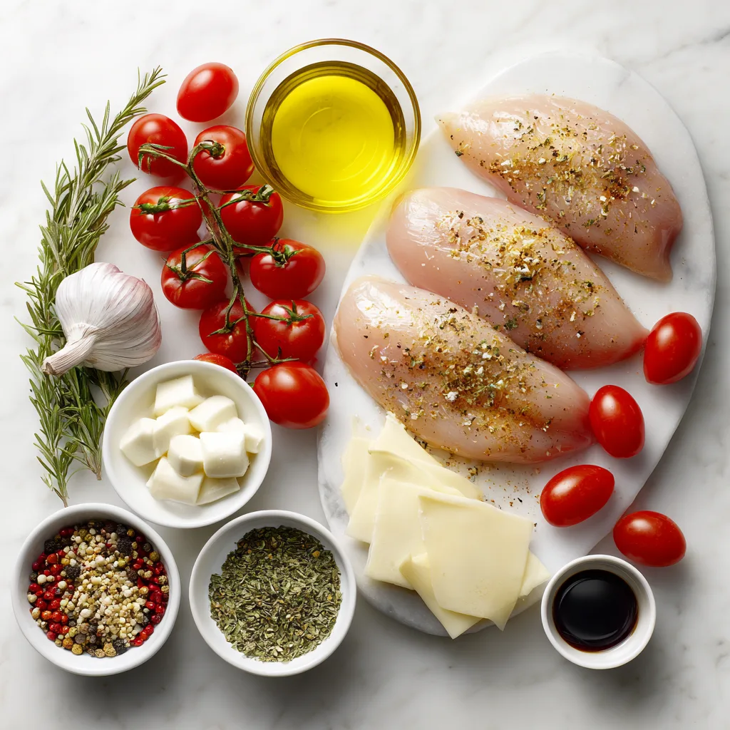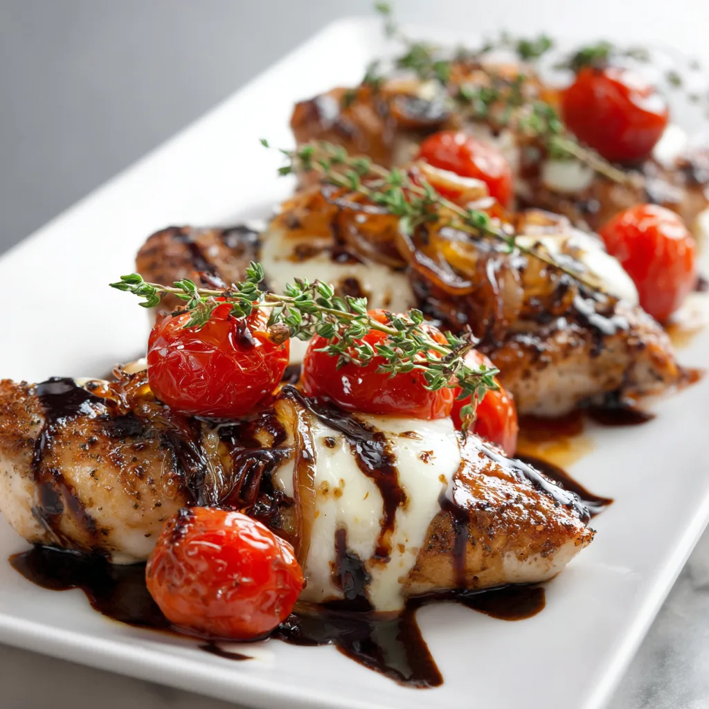 Juicy baked balsamic chicken topped with melted mozzarella, roasted tomatoes, and a rich tangy glaze. A quick, flavorful, and elegant dinner perfect for weeknights or entertaining.