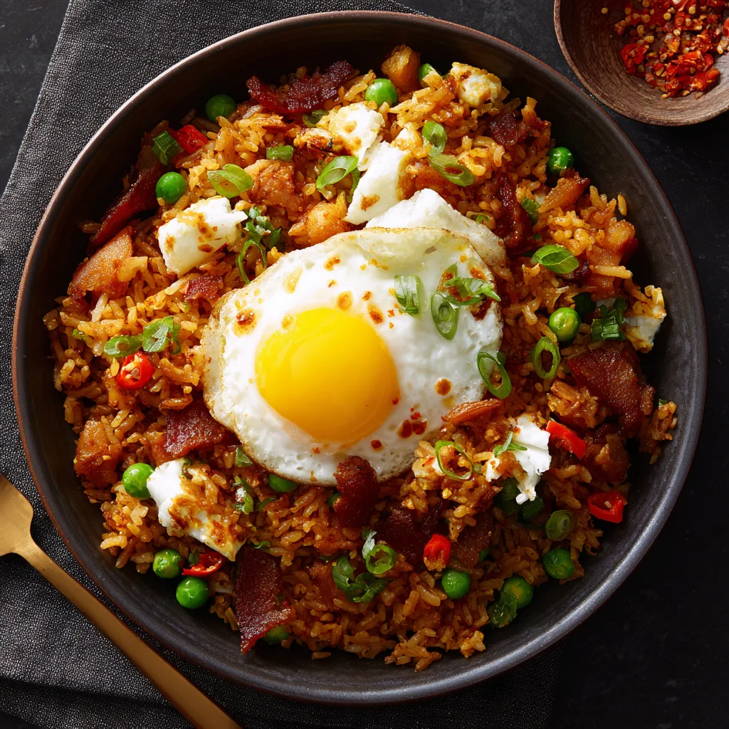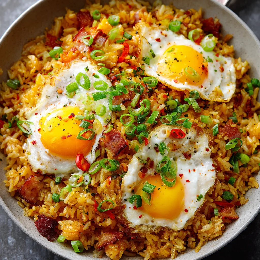 What makes this dish truly special is how it flips expectations. Fried rice is often thought of as dinner food, but when paired with breakfast-friendly elements like eggs, crispy bits, and a sauce that leans creamy and slightly sweet, it becomes the ultimate morning upgrade. This is the kind of breakfast you make on a slow weekend, a brunch gathering with friends, or a weekday morning when you’re tired of routine. Estimated calories per serving range from 480–540, depending on add-ins and portion size, making it hearty enough to keep you full well into the afternoon.