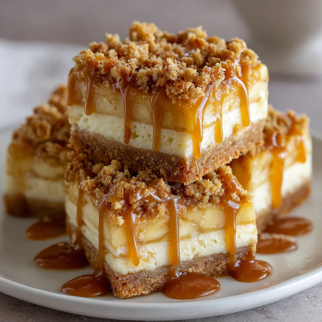 These Caramel Apple Cheesecake Bars are everything you crave in a cozy fall dessert—velvety cheesecake, warm cinnamon apples, a buttery crumble topping, and a glossy drizzle of caramel that melts into every bite. From the moment this bakes, your kitchen fills with the irresistible aroma of cinnamon-spiced apples and sweet cream cheese, like a cross between apple pie and classic cheesecake.