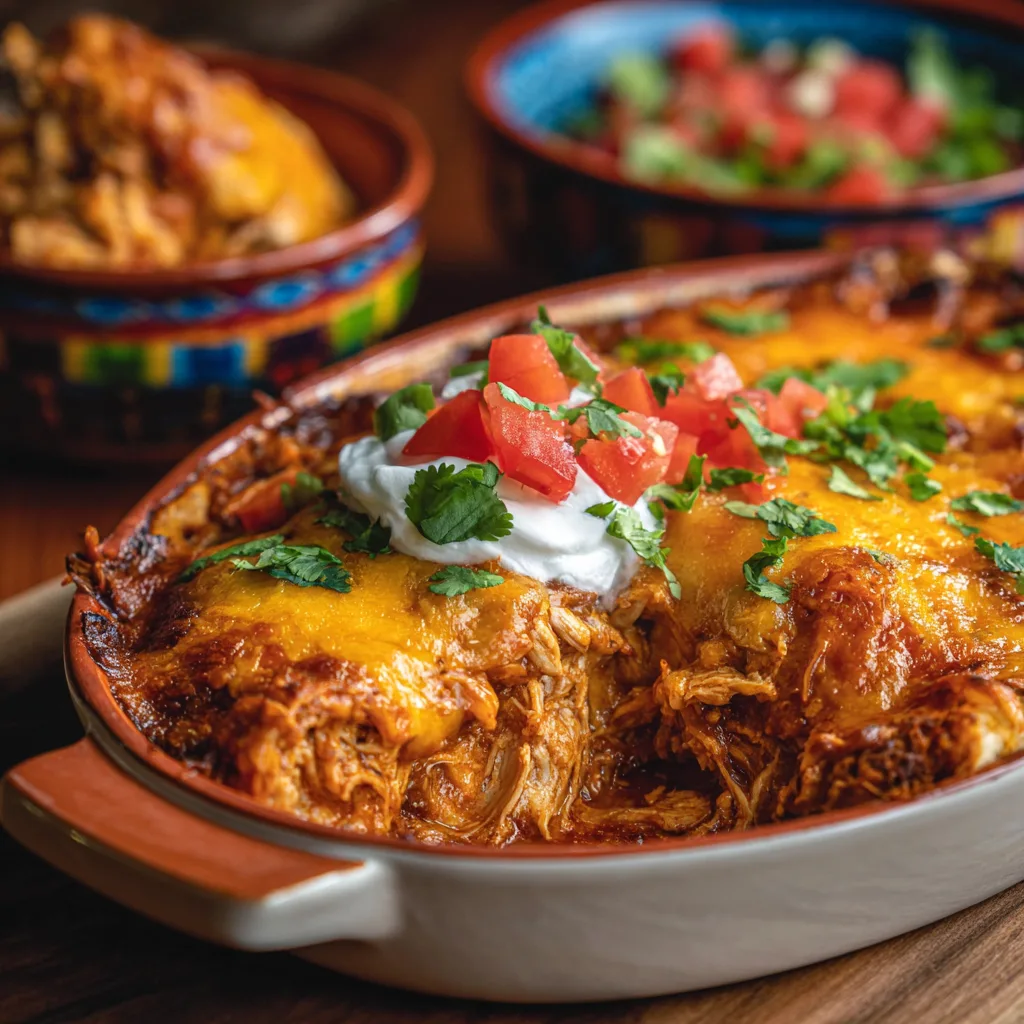 Enchiladas have long been a family favorite, often made to bring everyone together around the table. But making rolled enchiladas can sometimes feel like a bit of a task—so this casserole version keeps all the bold, authentic flavors while cutting back on the work. Imagine tender shredded chicken, tangy enchilada sauce, melty cheese, and layers of tortillas, all baked together to perfection. 🌮🧀✨