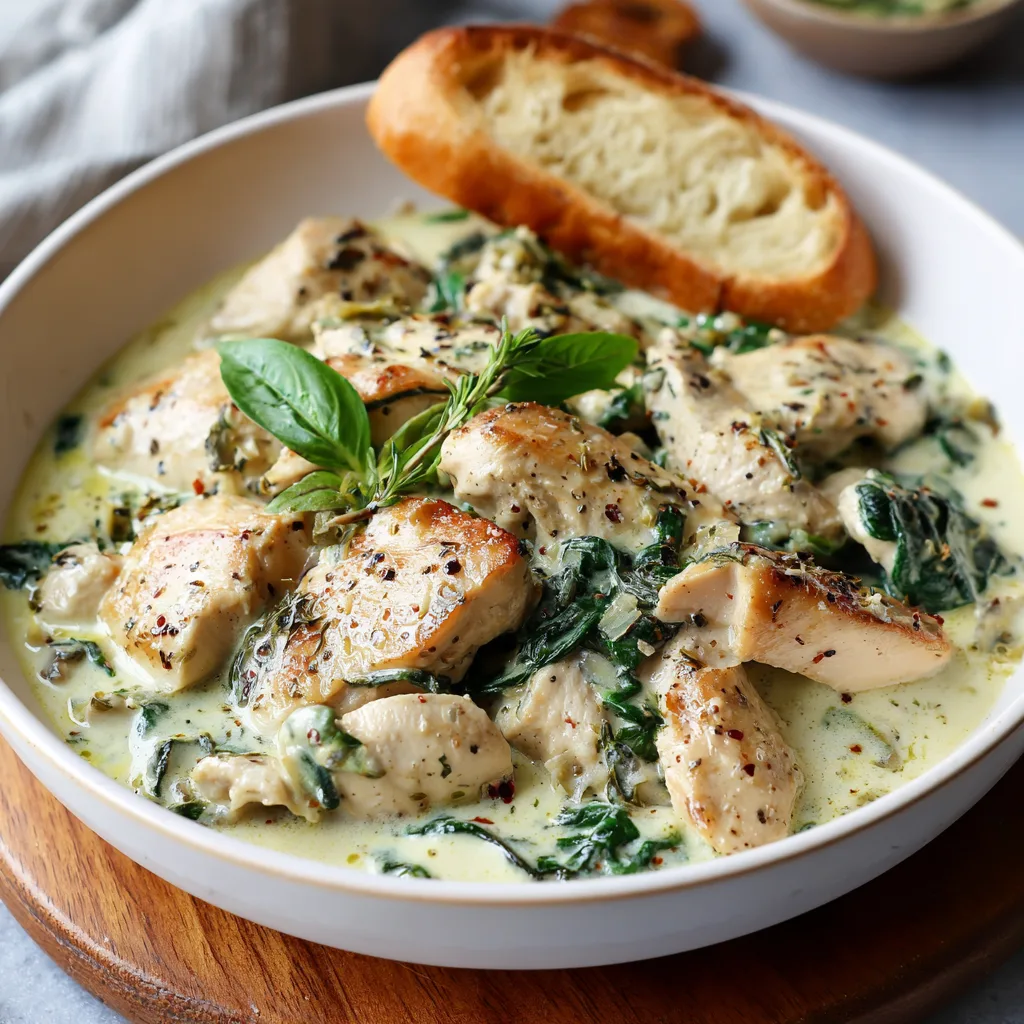 This dish is rich in protein and offers a good dose of iron and calcium from the spinach and cream. It’s a balanced comfort food that fits perfectly into a hearty weekday dinner rotation. For a lighter twist, you can use half-and-half instead of cream or swap chicken breasts for thighs if you prefer juicier meat.