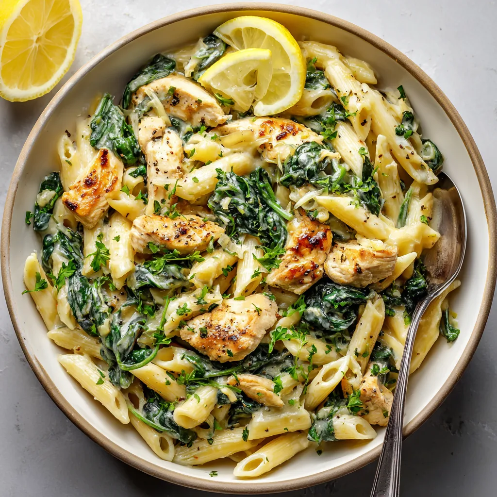 Creamy Chicken Spinach Pasta shines when served fresh and hot, with the sauce luxuriously coating every bite. For a cozy family-style meal, bring the skillet straight to the table and let everyone help themselves. Finish with extra grated Parmesan and freshly cracked black pepper for a simple yet inviting presentation.