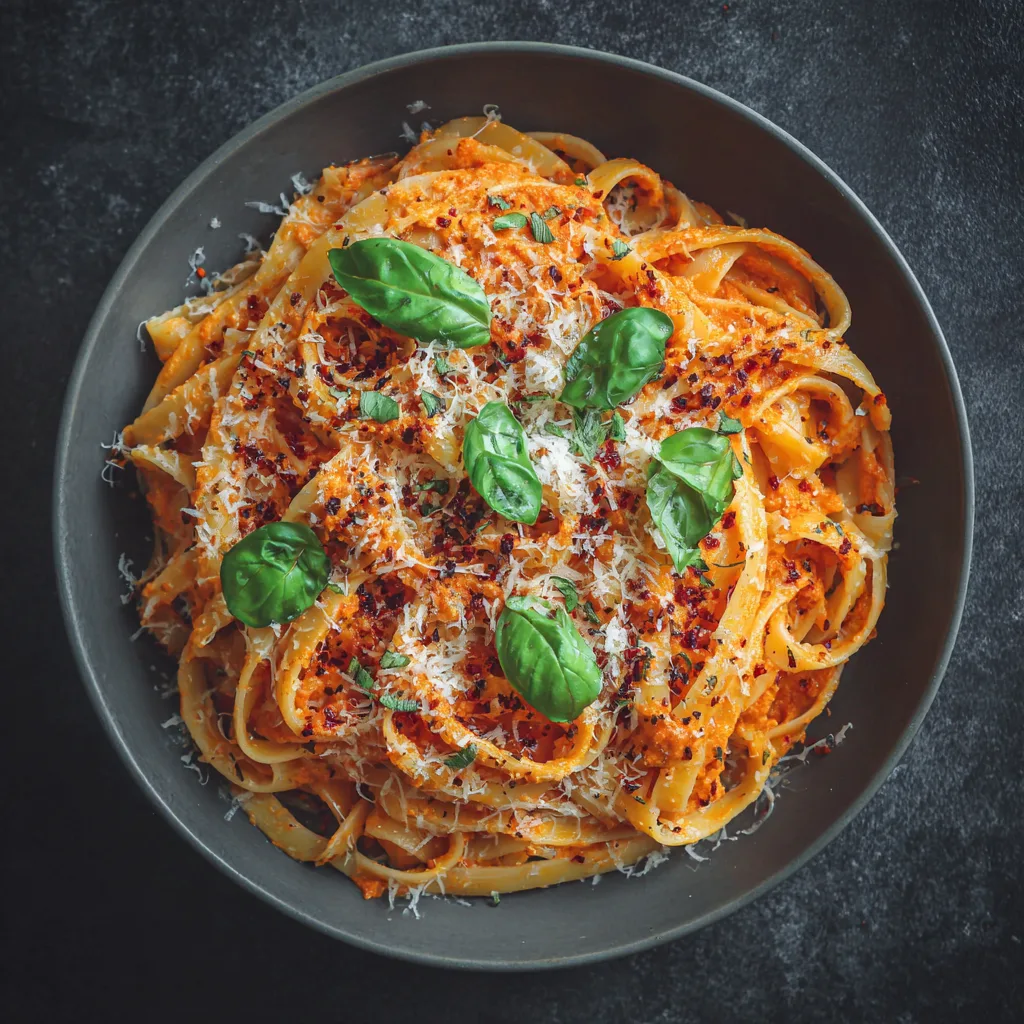 This pasta has deep Mediterranean roots, born from kitchens where resourceful home cooks turned simple roasted peppers into luxurious sauces. Over time, it’s become a beloved favorite across many regions — the kind of recipe your grandmother might make with her own roasted peppers straight from the garden. 🌶️