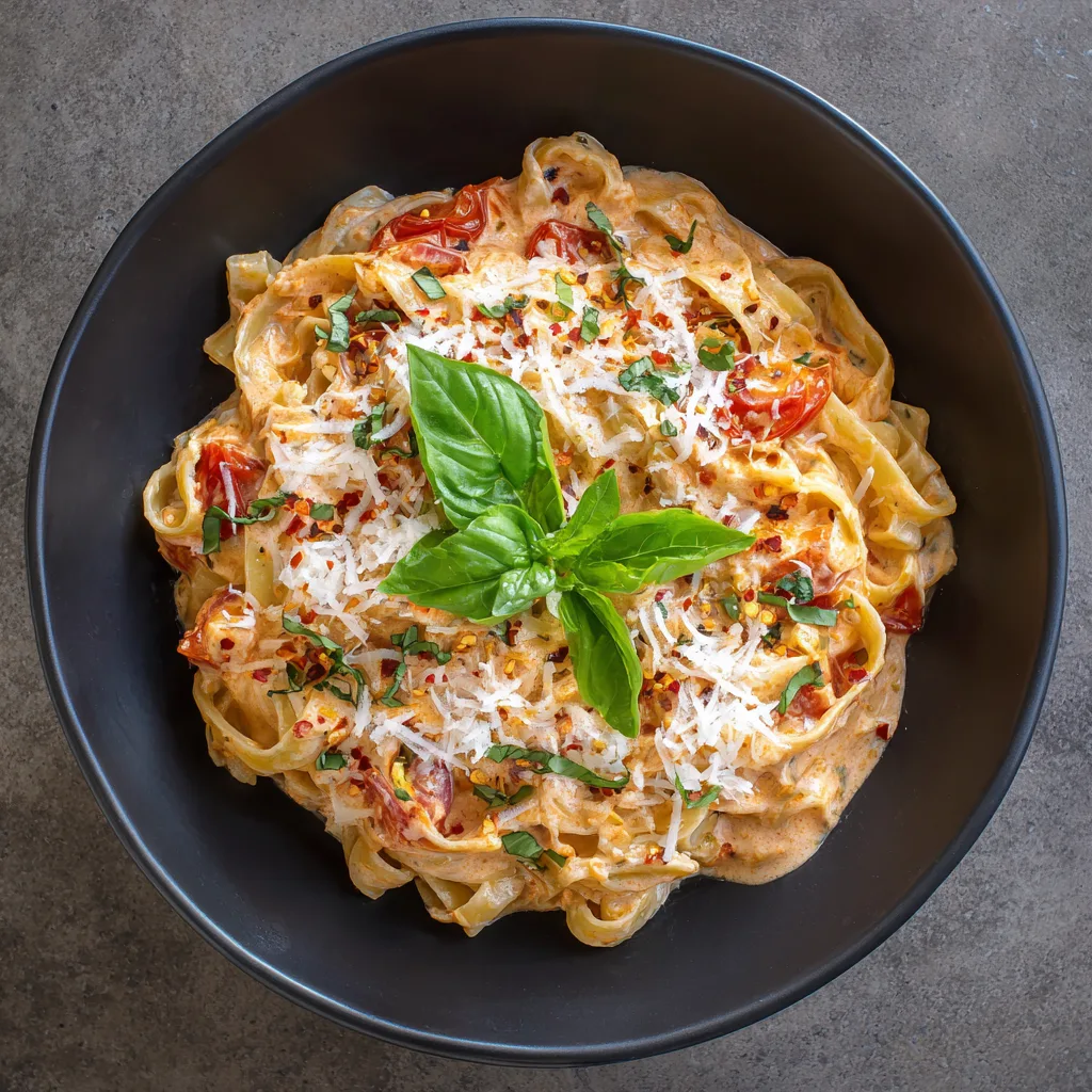 #PastaLovers #ItalianComfortFood #TomatoBasilMagic #CreamyDelight #HomemadeHappiness