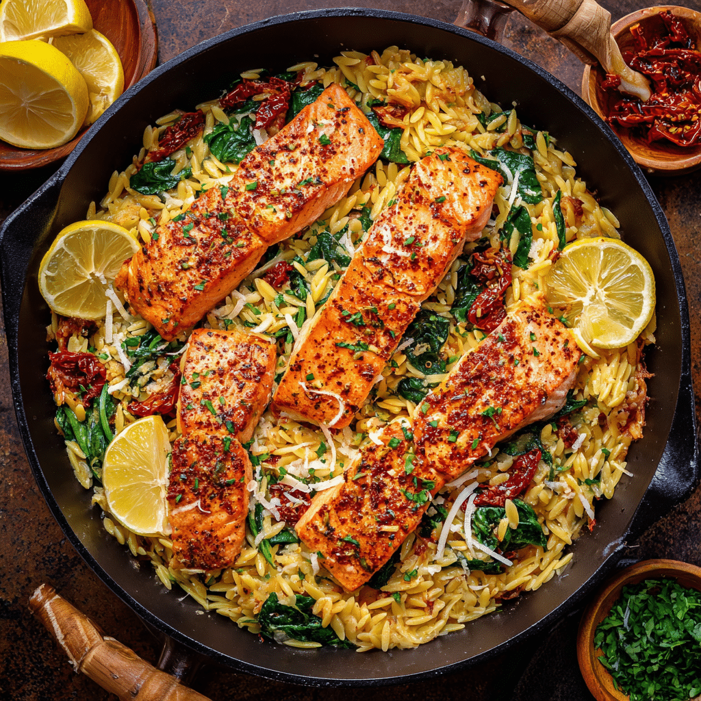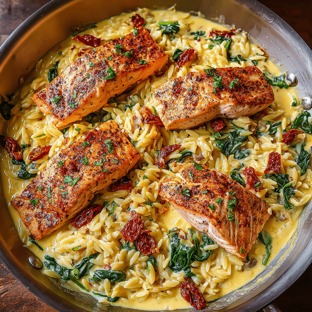 There’s something magical about creamy one-pot dishes that warm both the belly and the heart. 💛 Creamy Tuscan Salmon Orzo is one of those comforting meals that taste like a little luxury but come together in under an hour. Imagine tender salmon fillets seared to perfection, nestled into silky orzo pasta that’s cooked in a luscious garlic cream sauce, with sun-dried tomatoes and spinach adding bursts of color and flavor. 🍅🌿