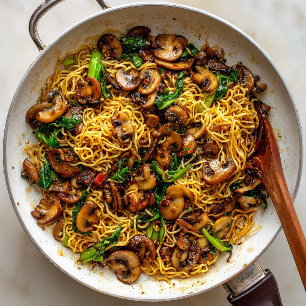 Serve these noodles piled high in warm bowls, with mushrooms nestled throughout and extra chili oil drizzled on top for shine. Finish with green onions and sesame seeds for freshness and crunch. The contrast between glossy noodles and crispy mushroom edges makes every forkful exciting.