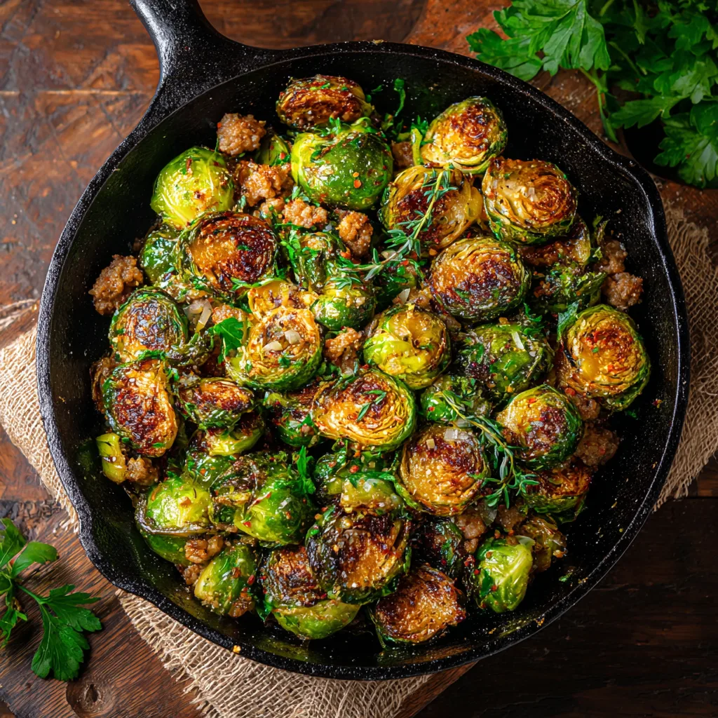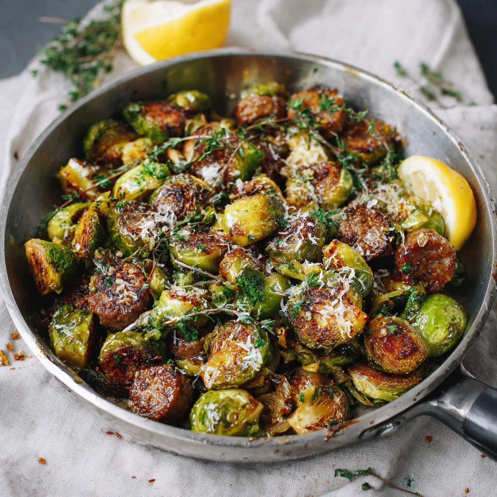 #BrusselsSproutsLove #RusticCooking #SausageSkillet #ComfortFoodAtHome #OnePanDinner #TraditionalFlavors #CrispyGoodness