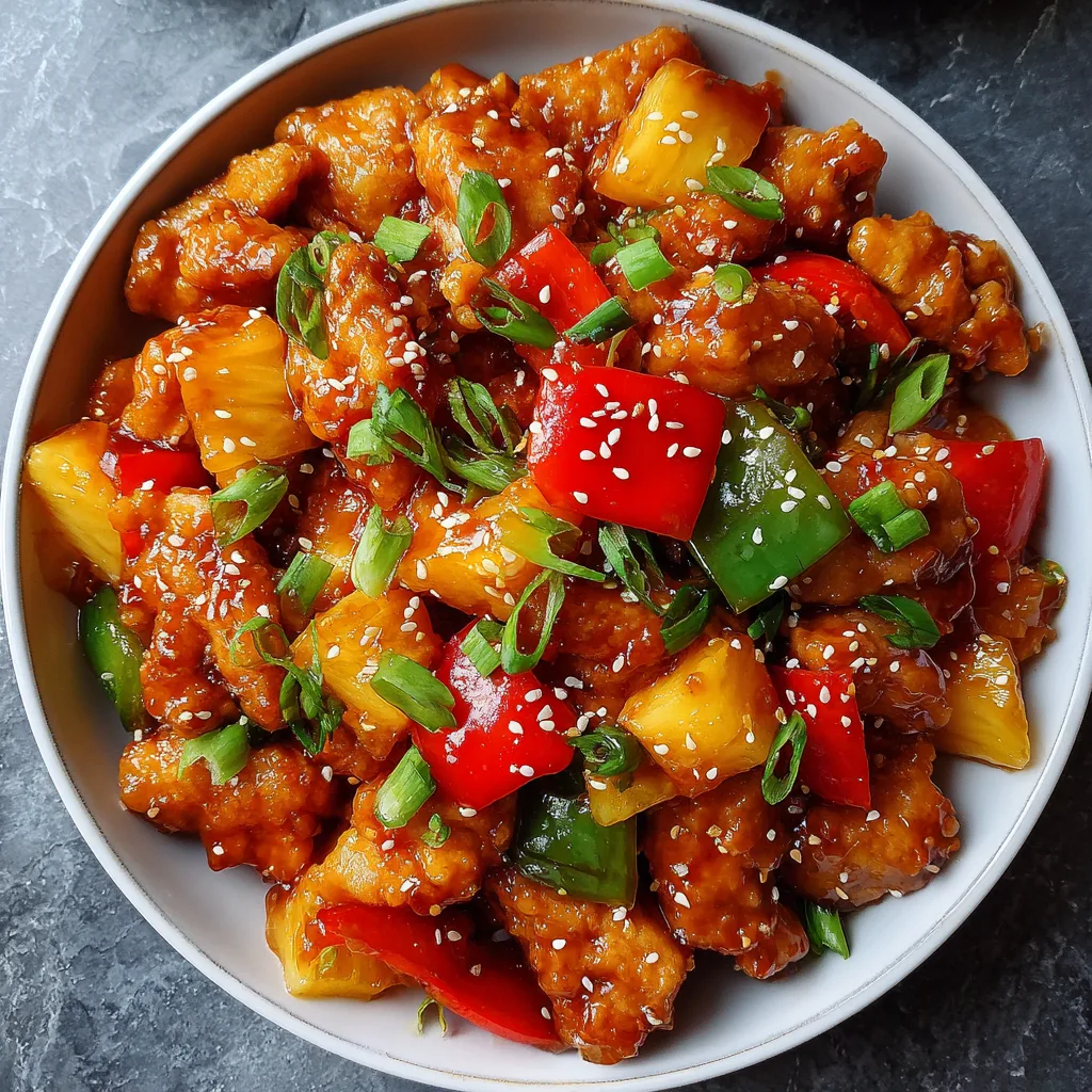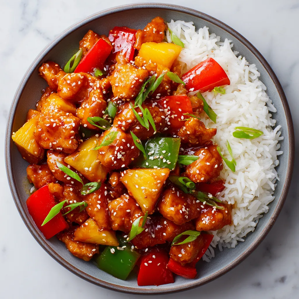 Spoon the sweet and sour chicken over fluffy rice or noodles. Sprinkle with green onions and sesame seeds for a restaurant-style finish. Every bite should have that perfect mix of tender chicken, tangy sauce, and sweet pineapple. 🍍✨