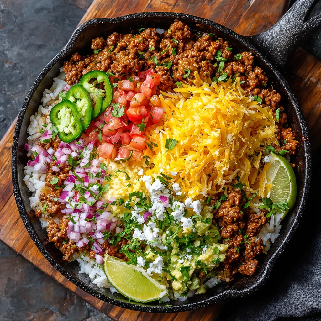 This recipe can easily be adjusted for dietary preferences. Use ground turkey or tofu for a lighter option, skip the cheese for dairy-free, or use cauliflower rice for a low-carb variation.