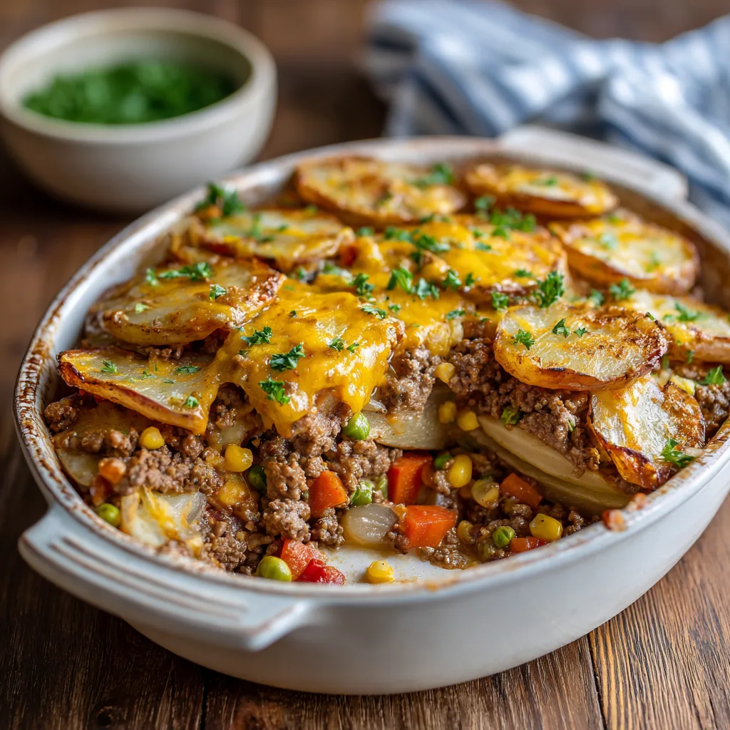 This hearty casserole packs balanced nutrition with a comforting flavor. The potatoes offer energy-giving carbs, while the beef adds rich protein and iron. The creamy sauce and cheese provide calcium and indulgence in every bite. Swap in ground turkey or lean beef for a lighter version, or add more veggies for a nutrient boost! 🌽🥕