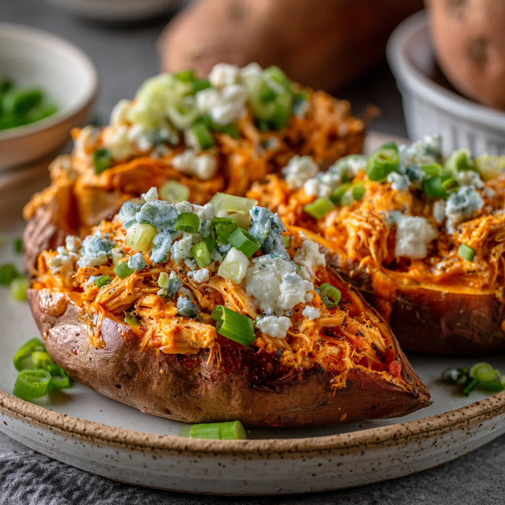 This recipe is special because it transforms classic buffalo chicken into a wholesome, well-rounded meal. Sweet potatoes bring natural sweetness, fiber, and vibrant color, while the buffalo chicken adds protein and personality. It’s the kind of dinner that feels cozy after a long day but still energizing rather than heavy. Perfect for busy weeknights, casual family dinners, or meal-prep Sundays, this dish is a hit with spice lovers and comfort-food fans alike.