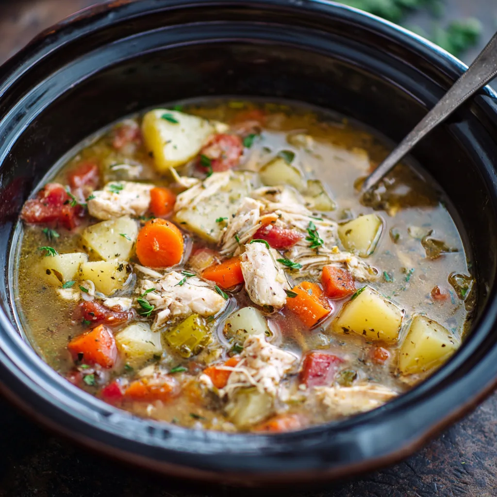 This comforting crockpot stew is the kind of recipe that makes your whole kitchen smell like a warm hug by dinnertime. It’s colorful, hearty, budget-friendly, and completely hands-off—just load everything in your slow cooker, walk away, and come back to a nourishing meal. The vegetables soften into a velvety broth, the chicken becomes perfectly tender, and the herbs fill every bite with a balanced, cozy flavor.