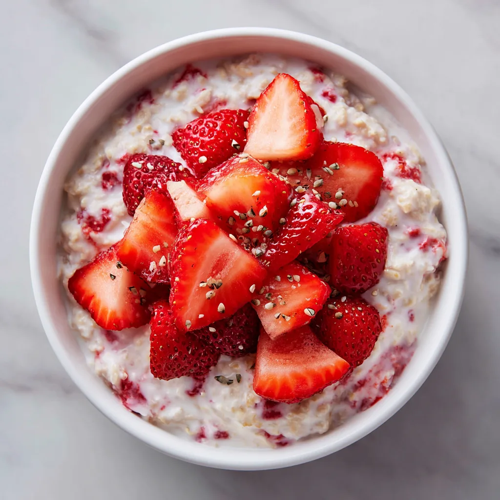 If you’re preparing multiple servings for the week, consider assembling parfait-style jars. Add a thin layer of Greek yogurt between layers of oats for extra creaminess and visual appeal. You can also create a breakfast bar by offering toppings such as granola, shredded coconut, hemp seeds, or nut butter for customization. For a portable option, pack the oats in leak-proof containers and keep toppings separate until serving to preserve crunch. Whether enjoyed at your desk, in the car, or at the table with family, these strawberry oats make healthy eating feel effortless and enjoyable.