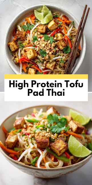 Make this high protein tofu Pad Thai at home—easy, healthy, and better than takeout. Packed with flavor, plant-based protein, and ready in under 40 minutes.