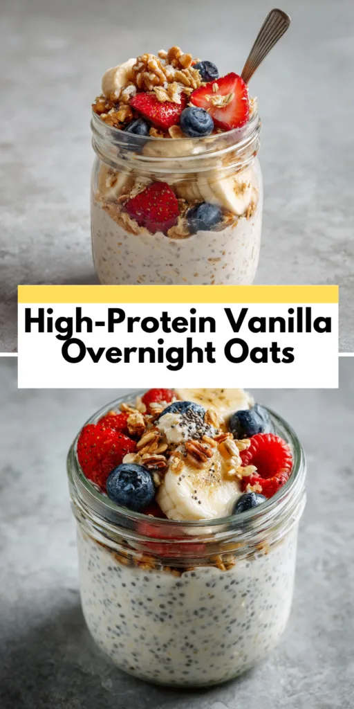 High-protein vanilla overnight oats recipe—healthy, creamy, and perfect for meal prep. A quick, no-cook breakfast packed with protein and flavor to fuel your day.