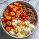 The Hot Honey Cottage Cheese Sweet Potato Beef Bowl is more than just a high-protein dinner — it’s a vibrant, nourishing experience in every bite. It proves that healthy meals don’t have to be bland or repetitive. The contrast between caramelized sweet potatoes, savory beef, cool cottage cheese, and sweet heat from hot honey creates a harmony that feels both comforting and exciting.