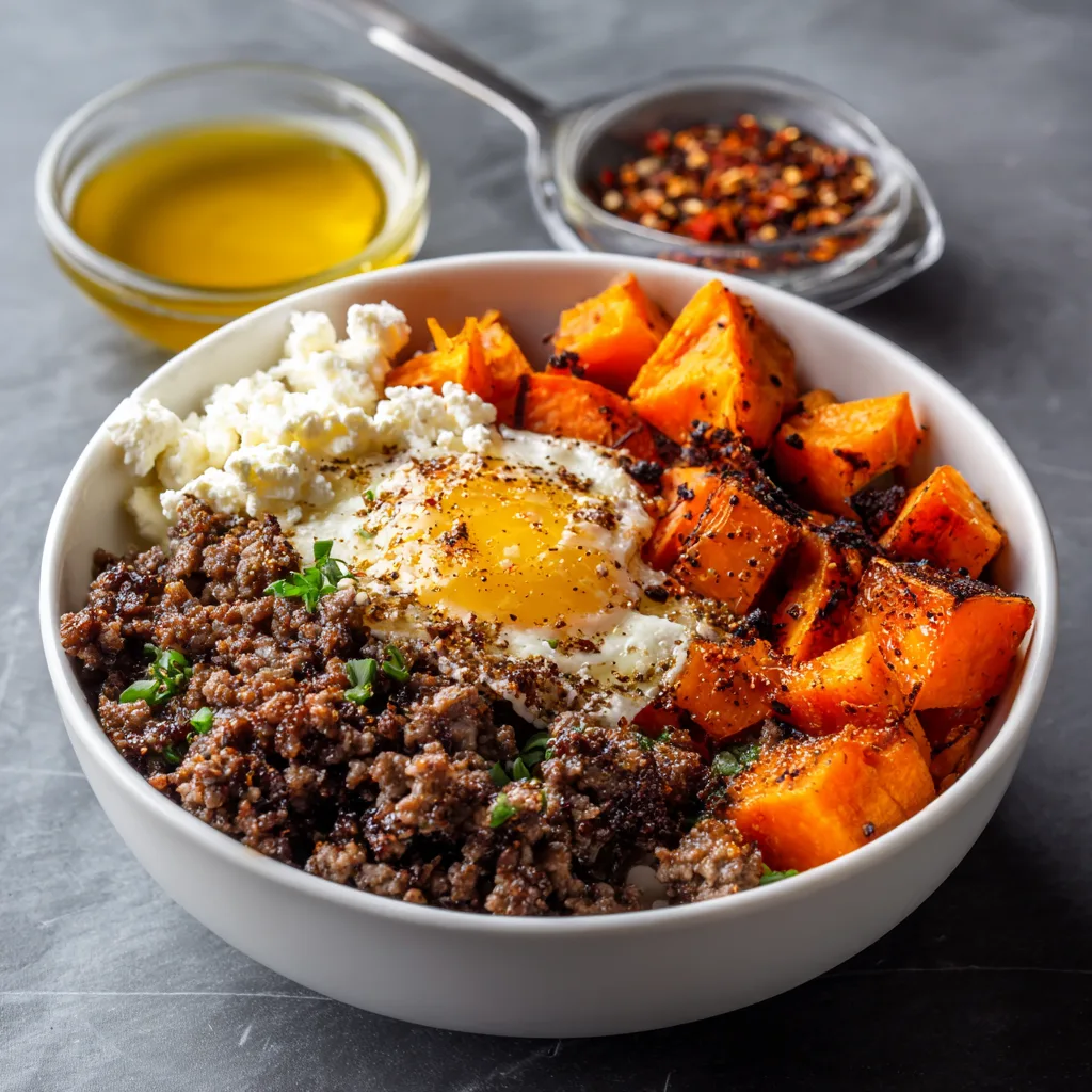 How to Make It (Step-by-Step Method) for Hot Honey Cottage Cheese Sweet Potato Beef Bowl