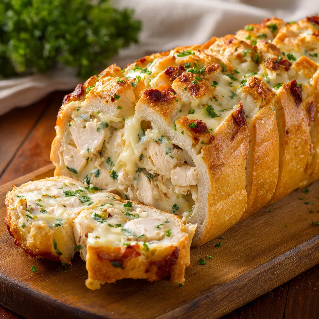 As it bakes, the aroma of garlic butter, melted cheese, and creamy sauce fills the kitchen, instantly building anticipation. The bread becomes toasted and crunchy, while the inside stays rich and gooey with tender chicken and velvety Alfredo sauce. Every bite delivers contrast: crisp edges, creamy filling, savory chicken, and cheesy stretch.