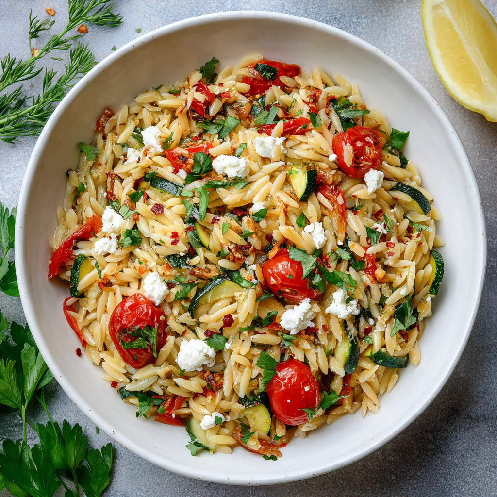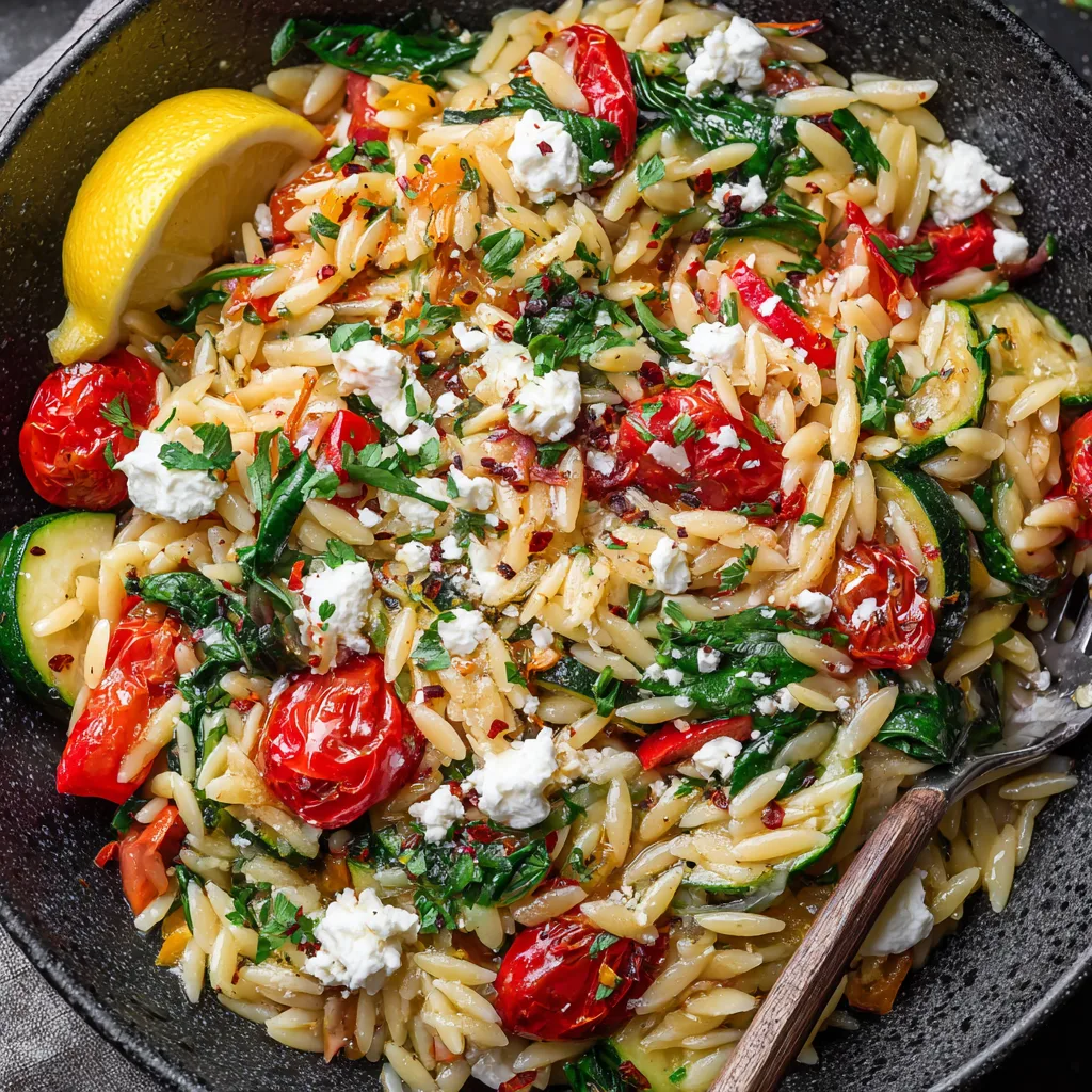 During summer, serve the orzo chilled as a refreshing Mediterranean Orzo Salad by adding cucumbers, bell peppers, and a drizzle of balsamic glaze. In cooler months, turn it into a warm, comforting Mediterranean Orzo Skillet by including roasted vegetables like zucchini, eggplant, or artichokes.