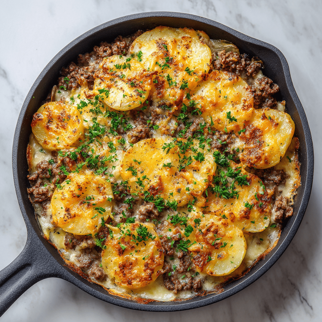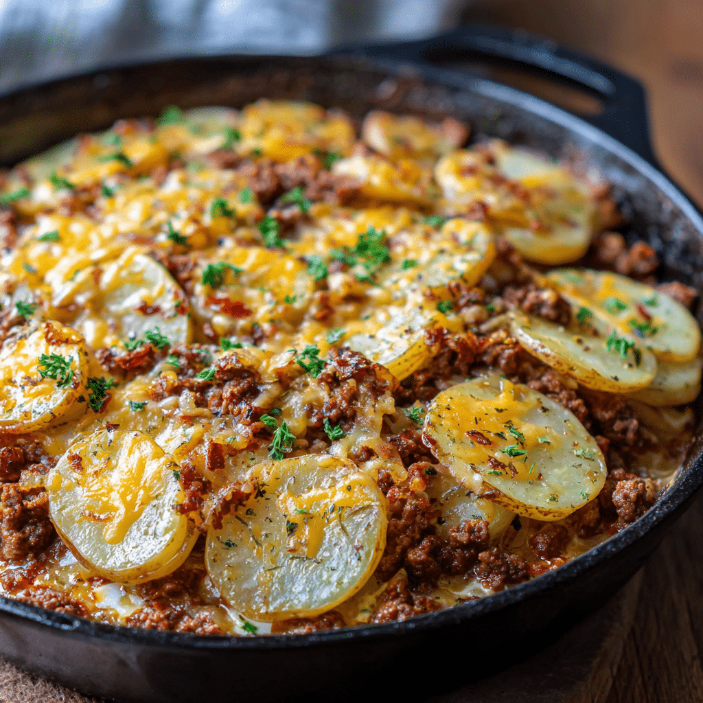 This humble recipe is all about comfort: tender ground beef, golden potatoes, onions, herbs, and a touch of cheese all layered together in one pan. The beauty lies not just in its flavor, but in its simplicity — it’s the kind of dish you prepare on a cool evening when you want your home to smell like love and warmth.