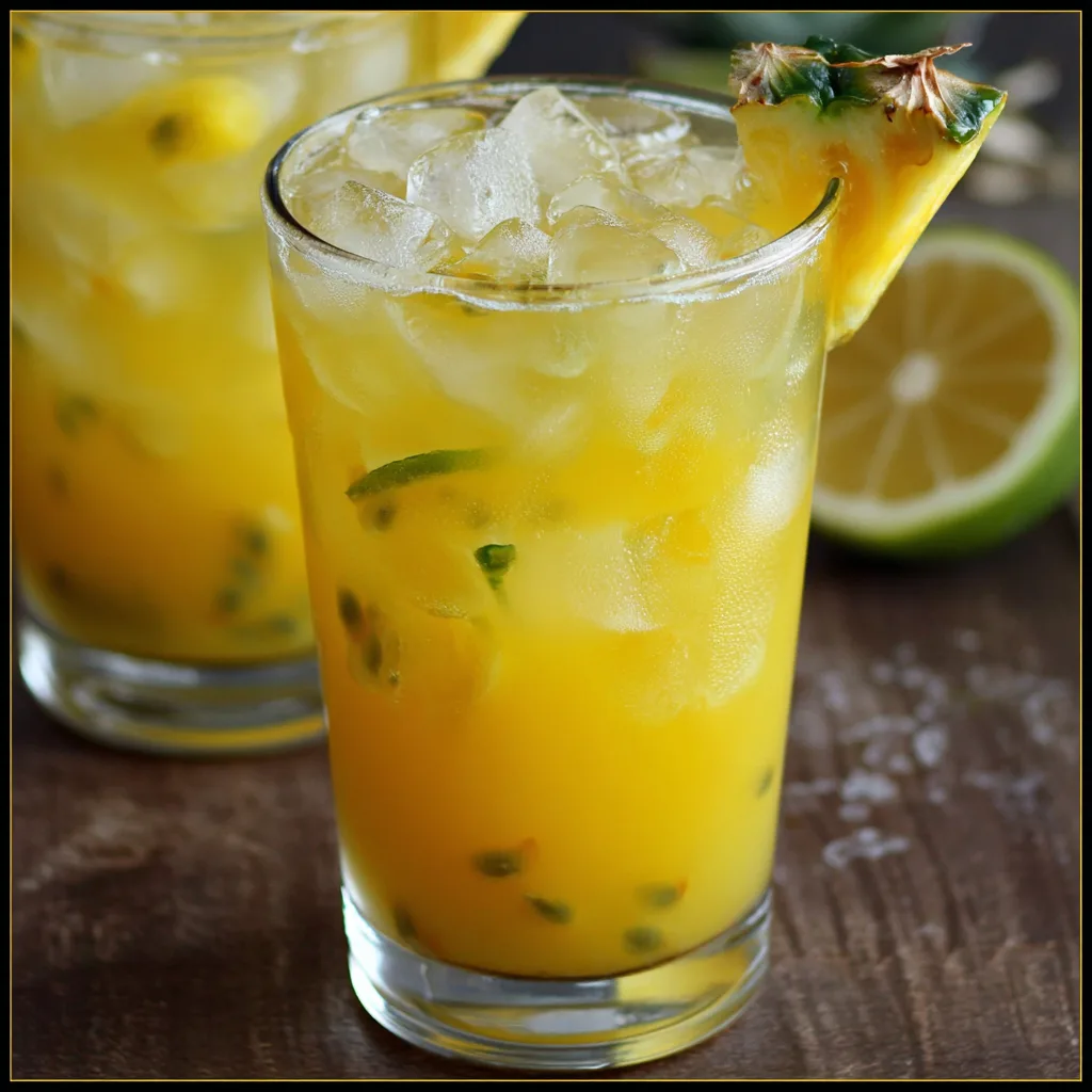 Bright, tropical, and instantly refreshing, Pineapple Passionfruit Refresher Lemonade tastes like pure summer in a glass. The first sip hits you with zesty lemonade, followed by juicy pineapple sweetness and the floral tang of passionfruit that lingers on your palate. Its sunny yellow color practically glows, filled with ice that clinks softly as you stir, releasing a fresh citrus aroma that feels like a beach breeze on a hot afternoon. Light, thirst-quenching, and perfectly balanced between sweet and tart, this drink has earned its viral status for good reason.