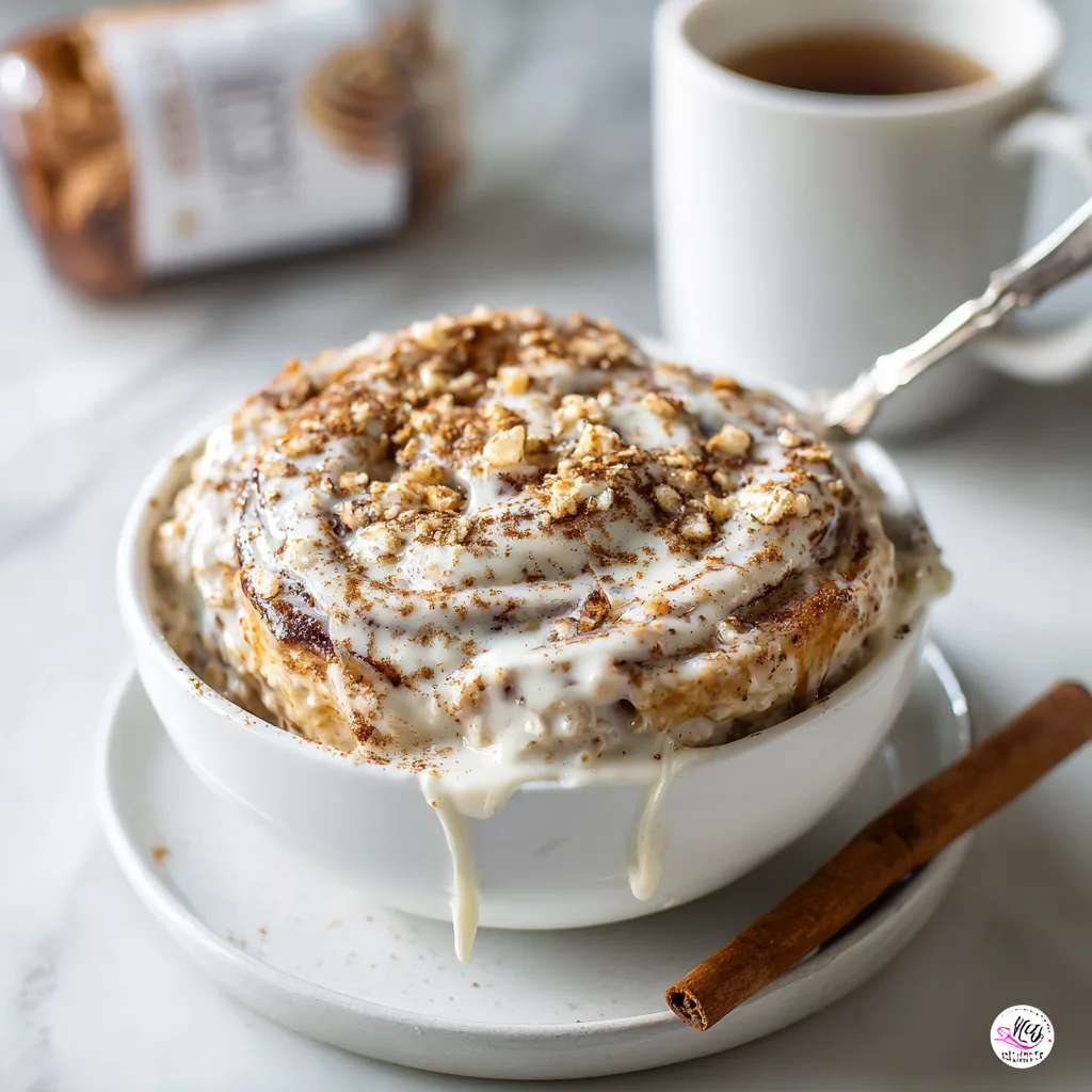 In the morning or before packing for lunch, give the oats a good stir. If they’re thicker than you like, add a splash of milk to loosen them. For the cinnamon roll “frosting” effect, mix cream cheese or Greek yogurt with a touch of powdered sugar or maple syrup until smooth, then swirl it on top. Finish with chopped nuts and a light sprinkle of cinnamon before serving.