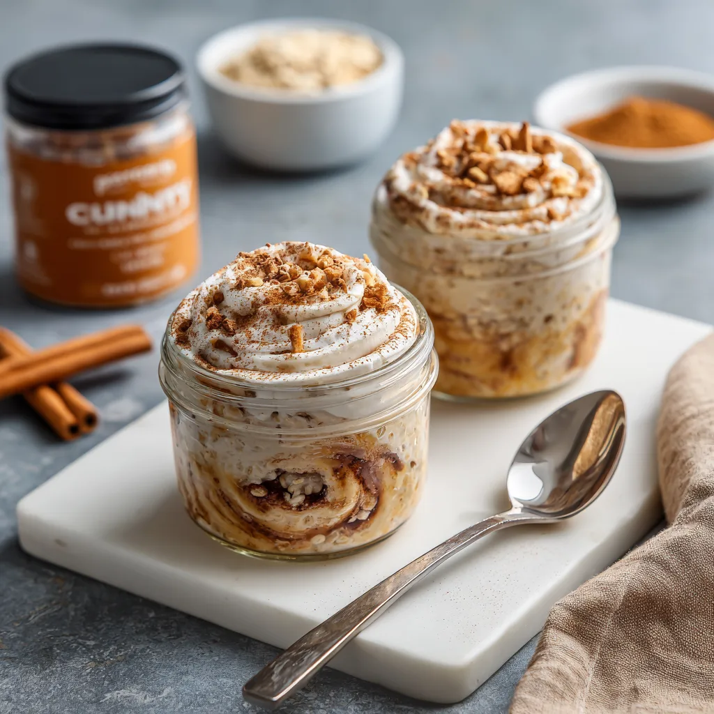 If you prefer a warm meal, these oats can be gently heated in the microwave for 30–60 seconds. Warming them enhances the cinnamon aroma and gives an even stronger “fresh cinnamon roll” feel. Add the frosting-style topping after heating so it stays creamy. For a more filling lunch, pair the oats with fresh fruit like apple slices or berries, or enjoy them alongside a boiled egg or handful of nuts. You can even portion them into smaller jars for a snack-style meal prep that still delivers protein and staying power.