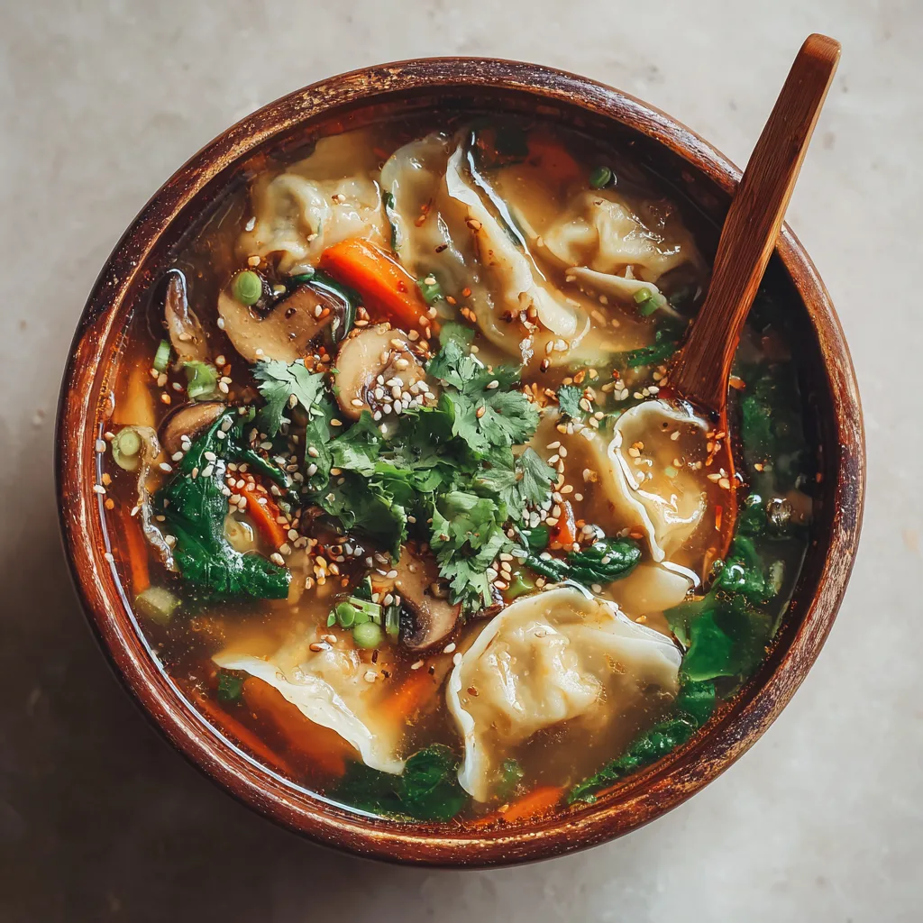 Ladle the soup into bowls, making sure each has a generous mix of broth, veggies, and dumplings. Sprinkle with cilantro, sesame seeds, and a drizzle of chili oil for that restaurant-quality finish. ✨