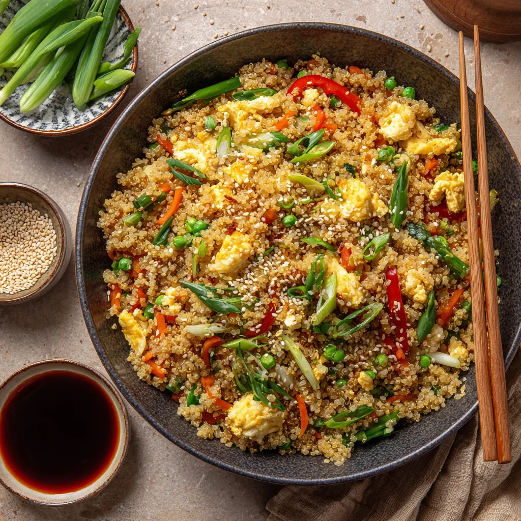 This dish captures the comforting essence of classic fried rice while embracing the modern goodness of quinoa — a high-protein, gluten-free grain that’s been a staple in Andean cuisine for thousands of years. 🌾💛 Instead of traditional rice, we’ll be using fluffy, nutty quinoa, which brings a slightly chewy texture and a beautiful depth of flavor. Combined with crisp vegetables, scrambled eggs, soy sauce, sesame oil, and optional touches like green onions or tofu, this recipe delivers the perfect fusion of East Asian inspiration and South American roots.