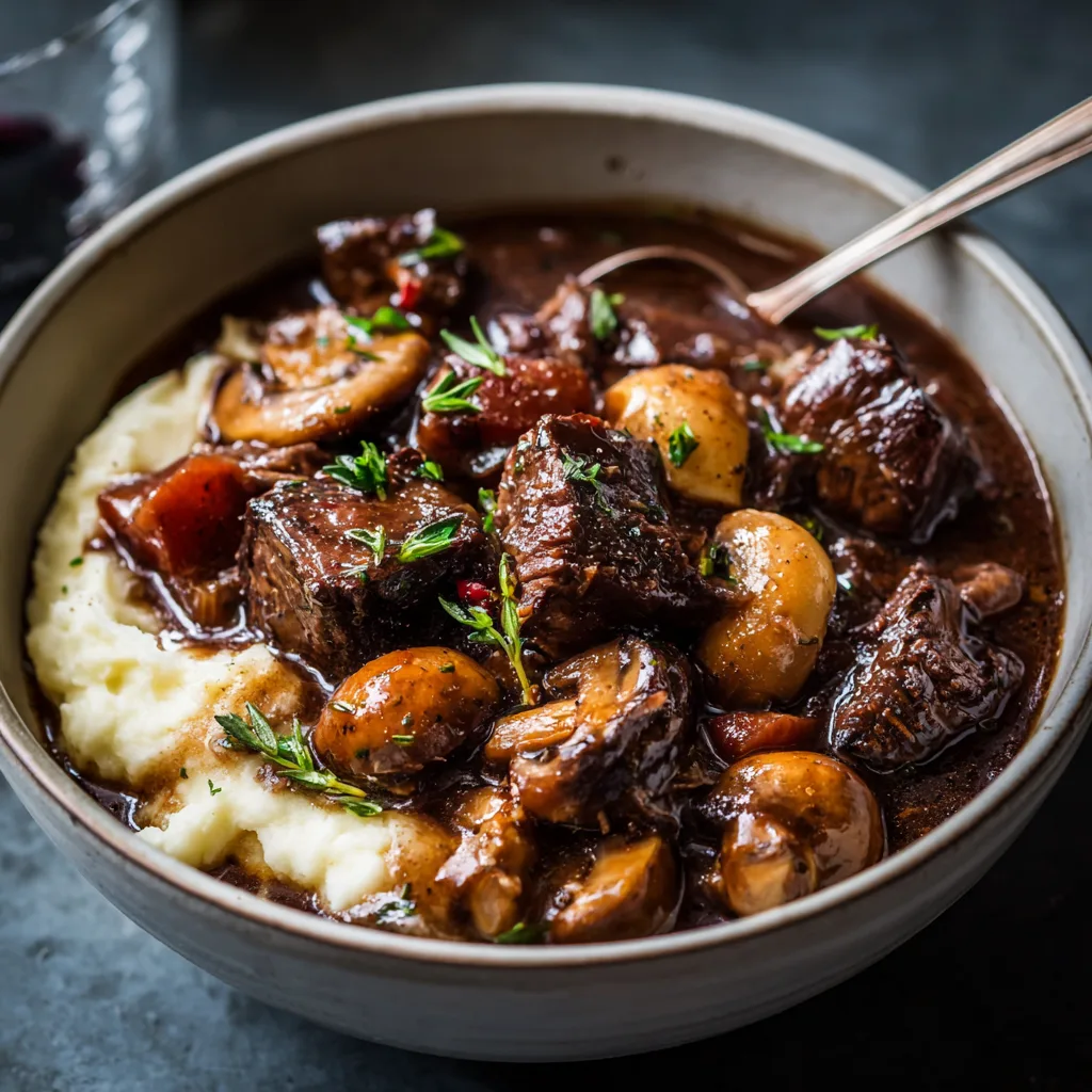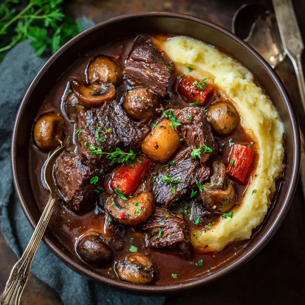 Imagine melt-in-your-mouth beef cubes surrounded by a deep, savory sauce of red wine, garlic, mushrooms, and carrots—every bite layered with comforting warmth. The slow cooking process allows every ingredient to release its full potential, resulting in a hearty and deeply flavorful stew. Whether you’re preparing it for your family or impressing guests, this recipe captures the heart of French home cooking while keeping things wonderfully simple. Pair it with creamy mashed potatoes, buttered noodles, or crusty bread for the perfect meal. Let’s dive into this luxurious yet approachable dish that will have everyone asking for seconds.