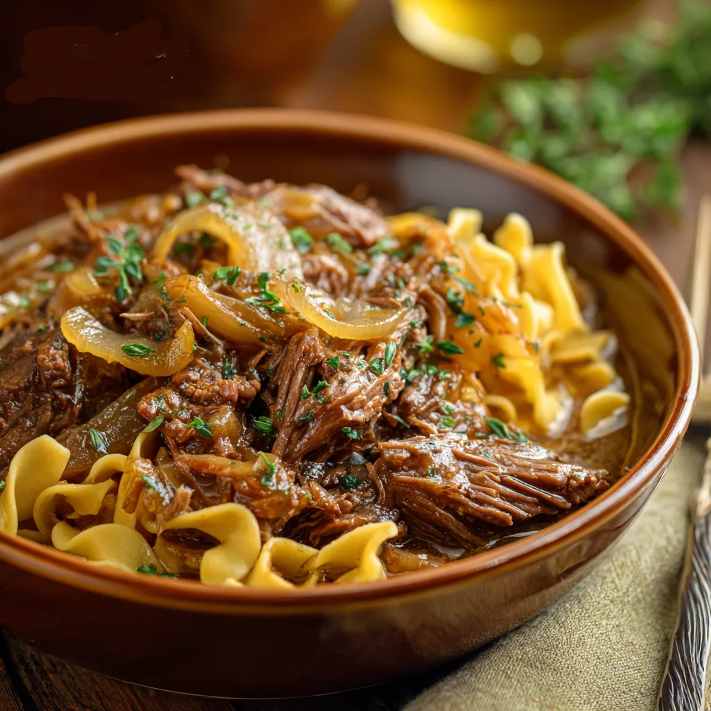 When you crave hearty comfort with minimal effort, this Slow Cooker French Onion Beef and Noodles recipe delivers everything you need in one warm, savory bowl. Imagine tender, melt-in-your-mouth beef simmered in a rich, onion-infused broth, tossed with egg noodles that soak up every drop of flavor. This is the kind of meal that fills your home with the irresistible aroma of slow-cooked goodness — the kind of dinner you can “set and forget” until it’s time to eat. The flavors are inspired by the classic French onion soup, reimagined into a cozy, stick-to-your-ribs meal that’s perfect for busy weeknights or lazy weekends. A touch of Worcestershire sauce and a hint of thyme elevate the dish with that deep umami character you expect from a slow-simmered meal. It’s simple to prepare, requires little hands-on time, and is guaranteed to become a family favorite. All you need is a slow cooker, a few pantry staples, and six hours of patience to achieve slow-cooked perfection — tender beef, caramelized onions, and silky noodles all in one pot.