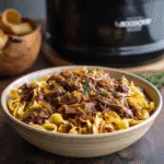 This slow cooker beef and noodles recipe isn’t just about convenience — it’s about comfort, flavor, and simplicity. Each bite captures the essence of slow cooking: tender beef that practically melts, onions that turn sweet and silky, and noodles that tie everything together in a luxurious, savory sauce.
