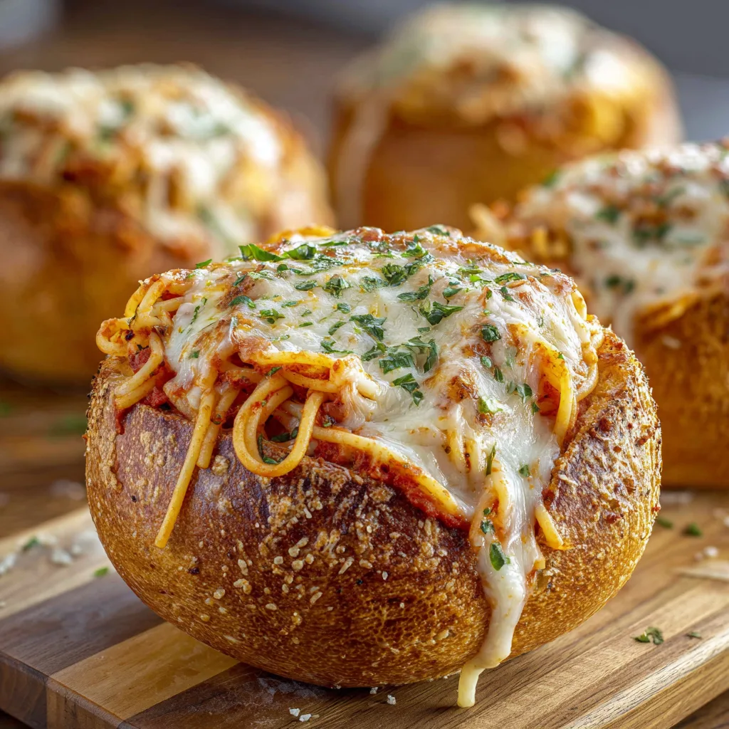 For family-style meals or gatherings, arrange the bread bowls on a large platter and garnish with fresh herbs and extra grated Parmesan. This presentation invites everyone to dig in and makes the meal feel festive and generous. You can even create a build-your-own setup by offering different fillings like meat sauce, creamy Alfredo spaghetti, or veggie-loaded marinara so everyone can customize their bowl. Whether served as a main dish or a fun twist for a dinner party, these bowls bring warmth, comfort, and a sense of indulgence to the table.