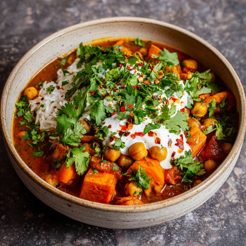 Hi there, food lover! 👋 Ready to fill your kitchen with the comforting aroma of spices and simmering coconut curry? This Sweet Potato and Chickpea Curry is a heartwarming dish that brings together the gentle sweetness of sweet potatoes, the nuttiness of chickpeas, and the fragrant charm of traditional spices. 🌿✨