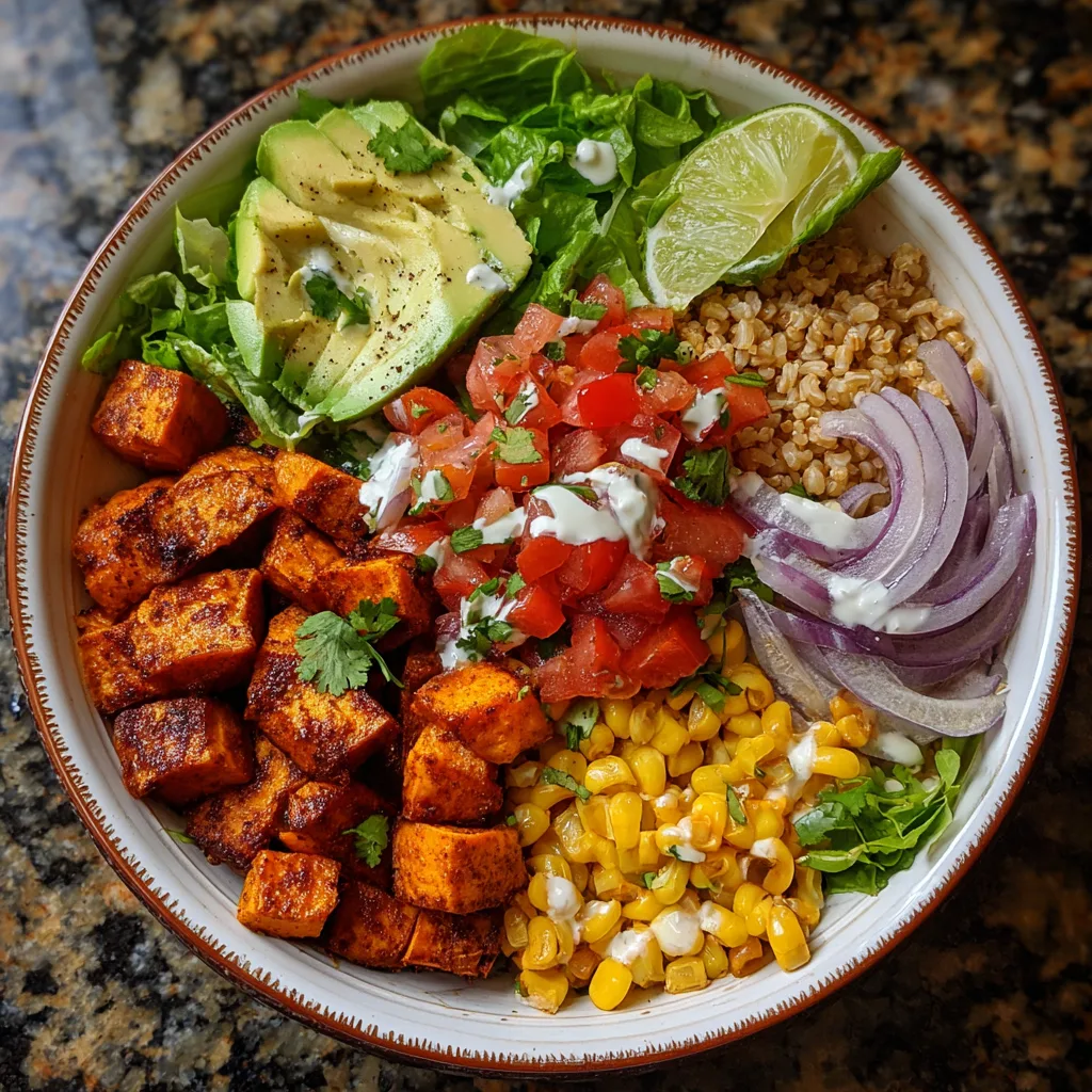 Sweet potatoes, with their natural sweetness and creamy texture, pair perfectly with smoky spices and zesty lime. Combine that with a medley of crunchy toppings and a drizzle of tangy dressing, and you’ve got yourself a bowl that’s as delicious as it is nourishing. 🌈✨