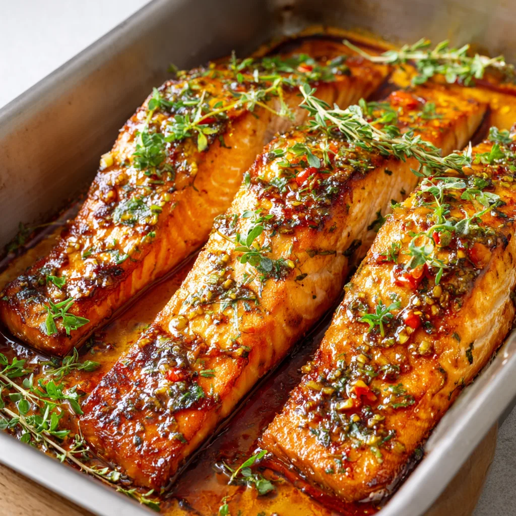 If you’re entertaining, plate the salmon on a large serving platter and garnish with lemon slices and fresh herbs for an elegant, inviting look. Serve with crusty bread to mop up the glaze, or offer a yogurt-based sauce or herbed butter on the side. Whether casual or refined, this salmon adapts effortlessly to the occasion.