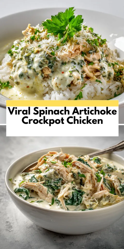 Viral Spinach Artichoke Crockpot Chicken is a creamy, comforting slow cooker dinner made with tender chicken, spinach, artichokes, and rich cheese. It’s an easy family-friendly meal perfect for busy nights.